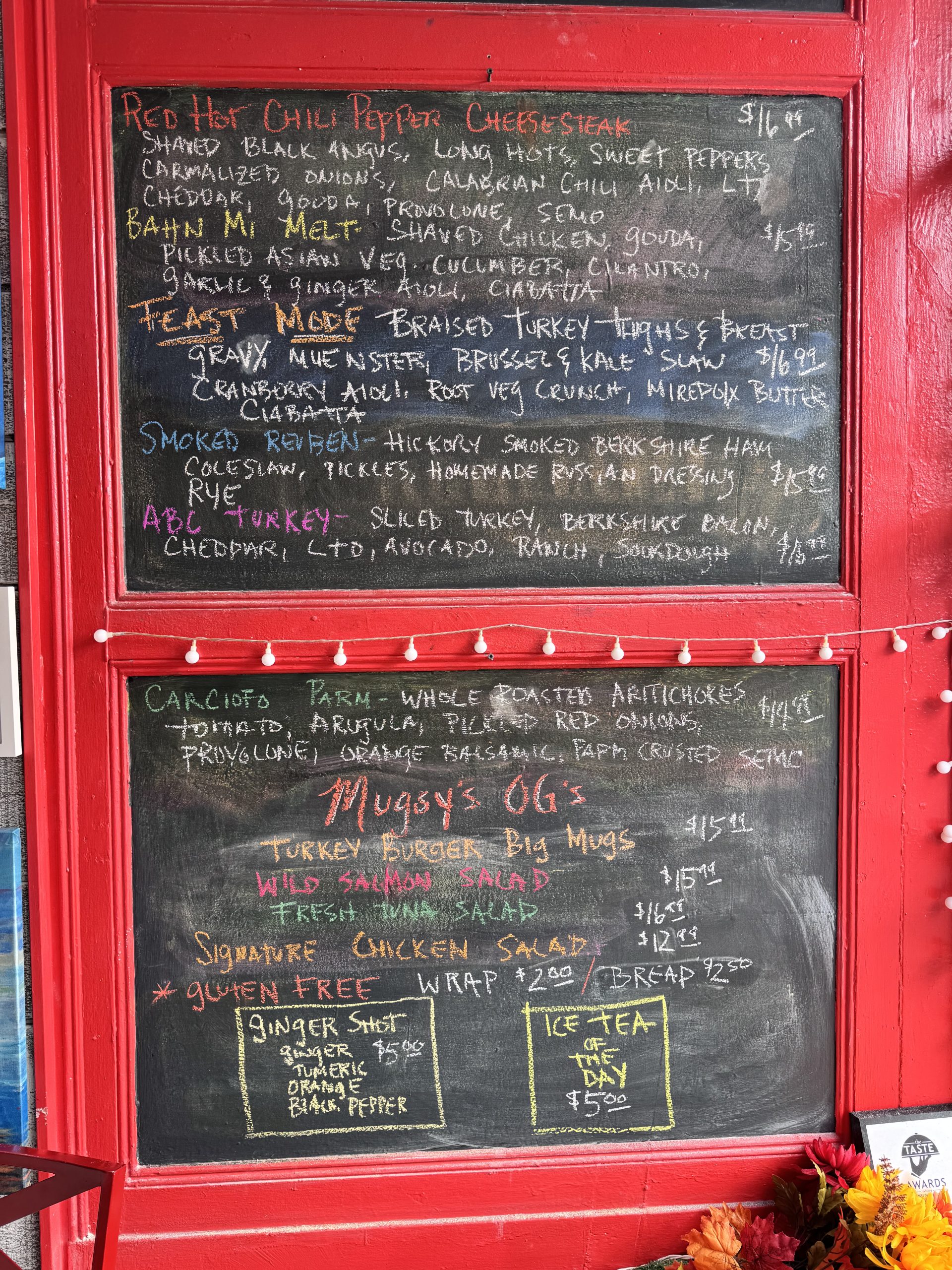 shaved house roasted turkey, Berkshire bacon, avocado, apple, cheddar Cheese, lettuce, tomato, onion, homemade ranch, Toasted sourdoughbrie’s knees…$14.99